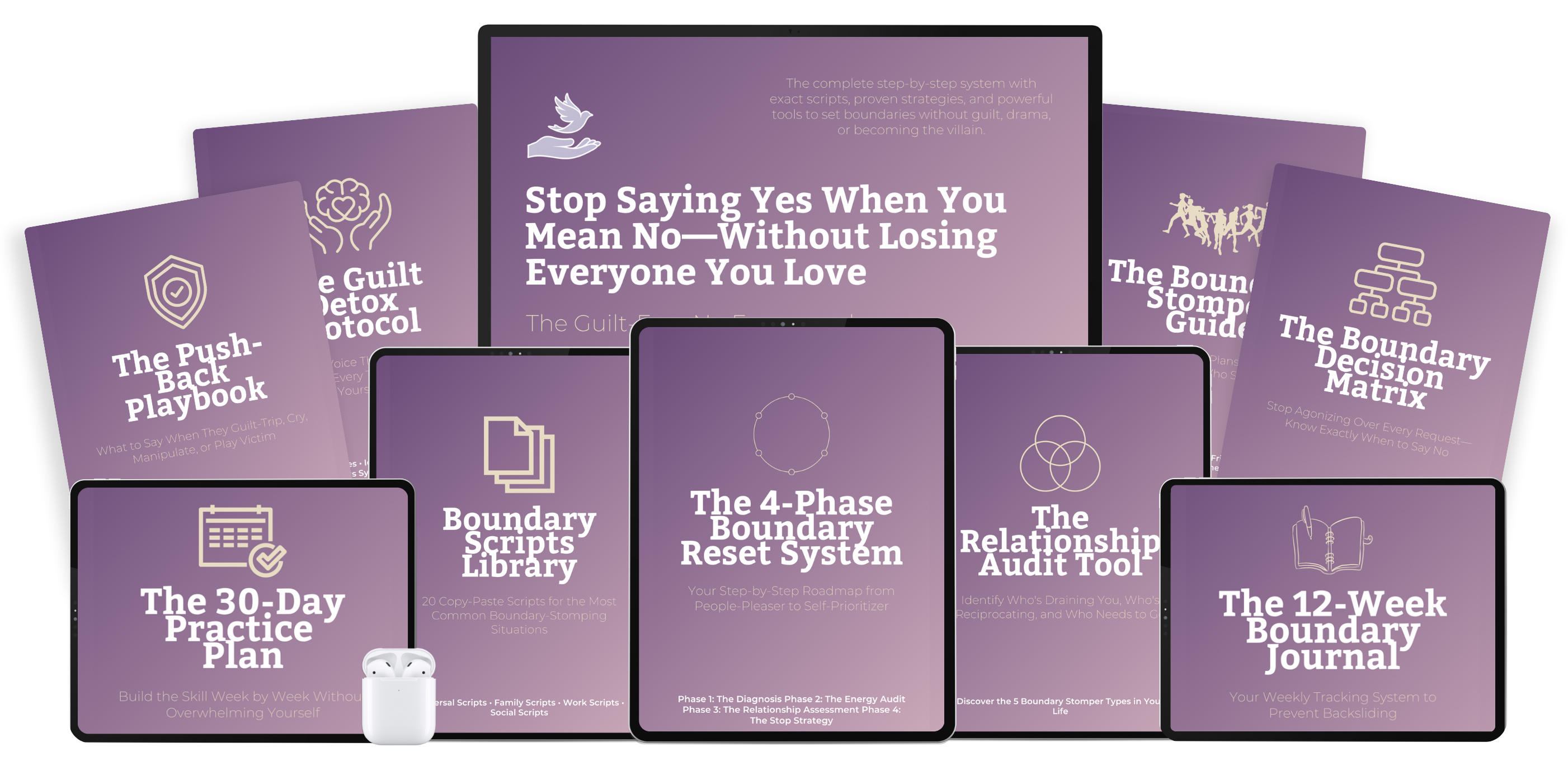The 4-Phase Boundary Reset System: Understand exactly why you can't say no, identify where you're leaking energy, audit your relationships, and learn how to stop the cycle without blowing up your life.