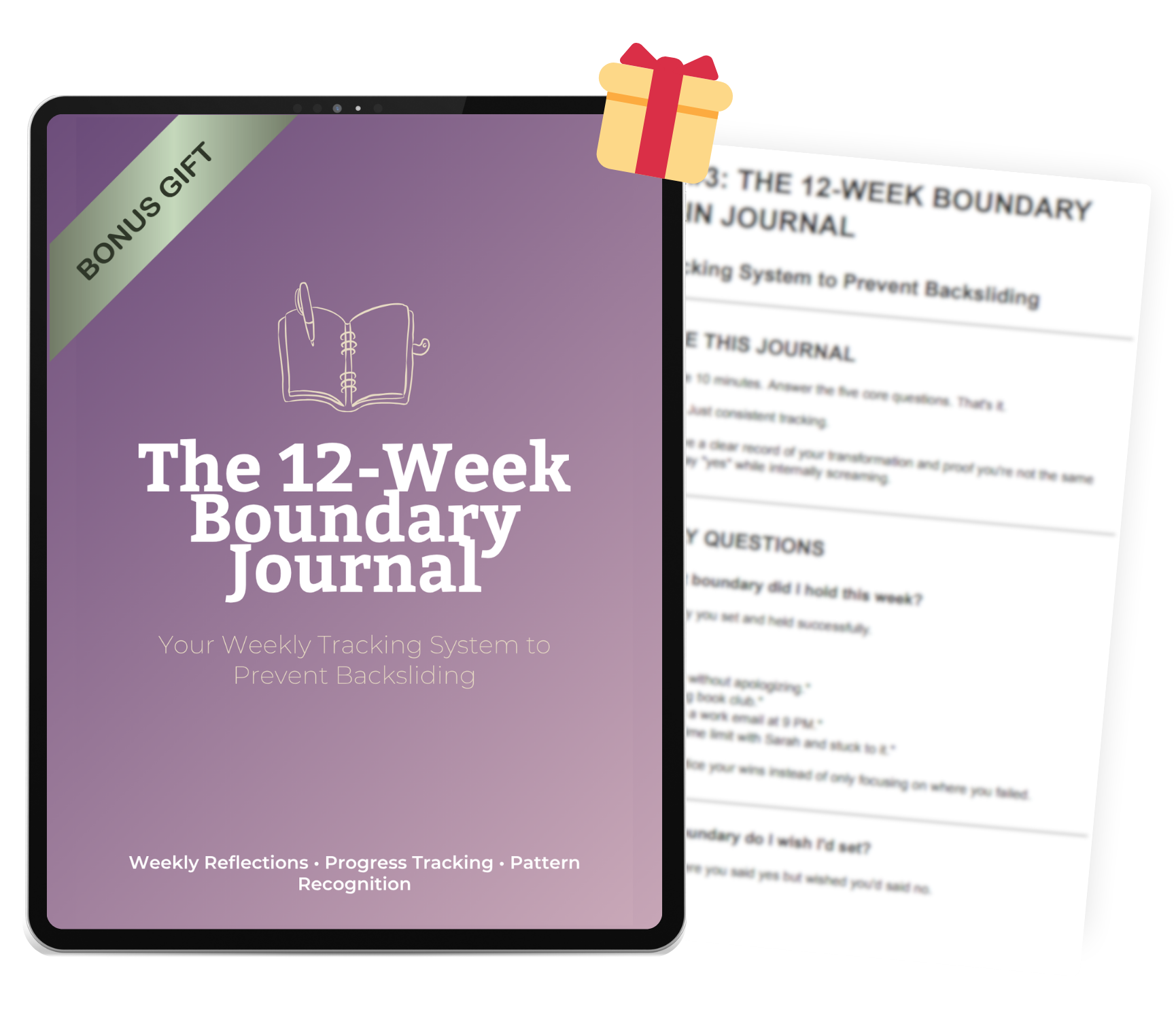 A tactical, no-BS weekly check-in (10 minutes) that tracks your progress and prevents backsliding. By week 12, you'll have proof you're not the same woman who used to say "sure!" while internally screaming.
