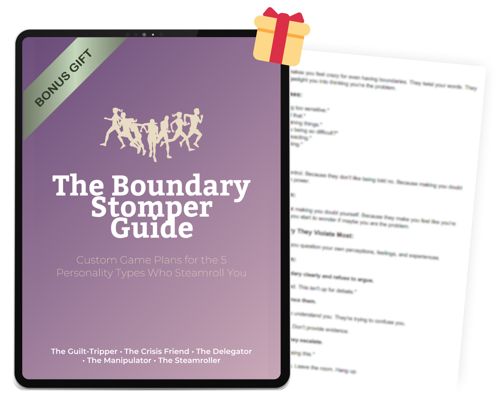 Yes. The Boundary Stomper Survival Guide is specifically designed for the five personality types who make boundary-setting feel impossible: The Guilt-Tripper, The Chronic Crisis Friend, The Delegator, The Manipulator, and The Oblivious Steamroller.