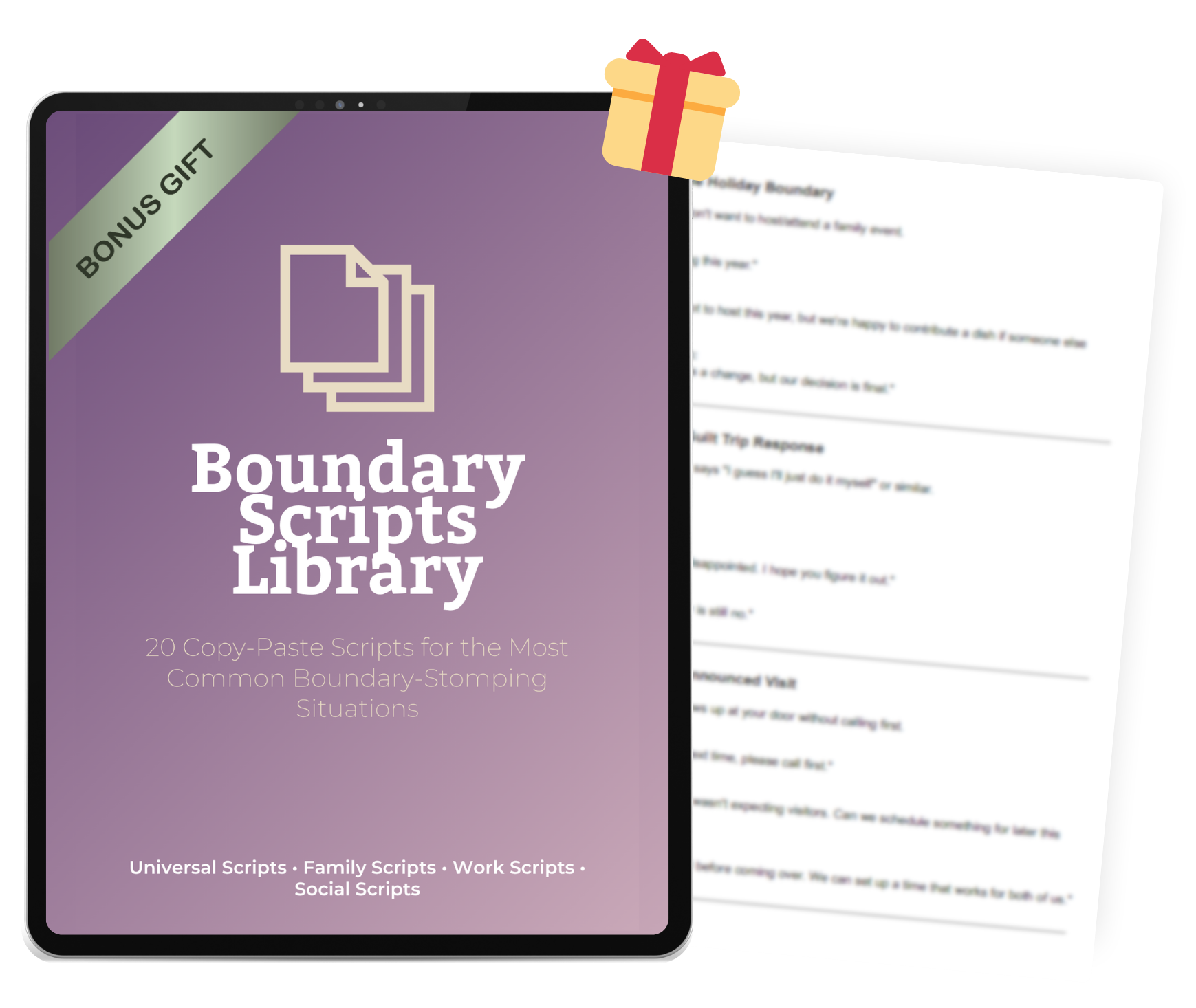 The Boundary Scripts Library covers 20 of the most common situations. The Boundary Stomper Survival Guide covers five personality types. Between those two tools, you'll find your situation—or something close enough that you can adapt it. And if you truly can't find your exact scenario, the framework teaches you the PRINCIPLES behind effective boundaries so you can create your own scripts.