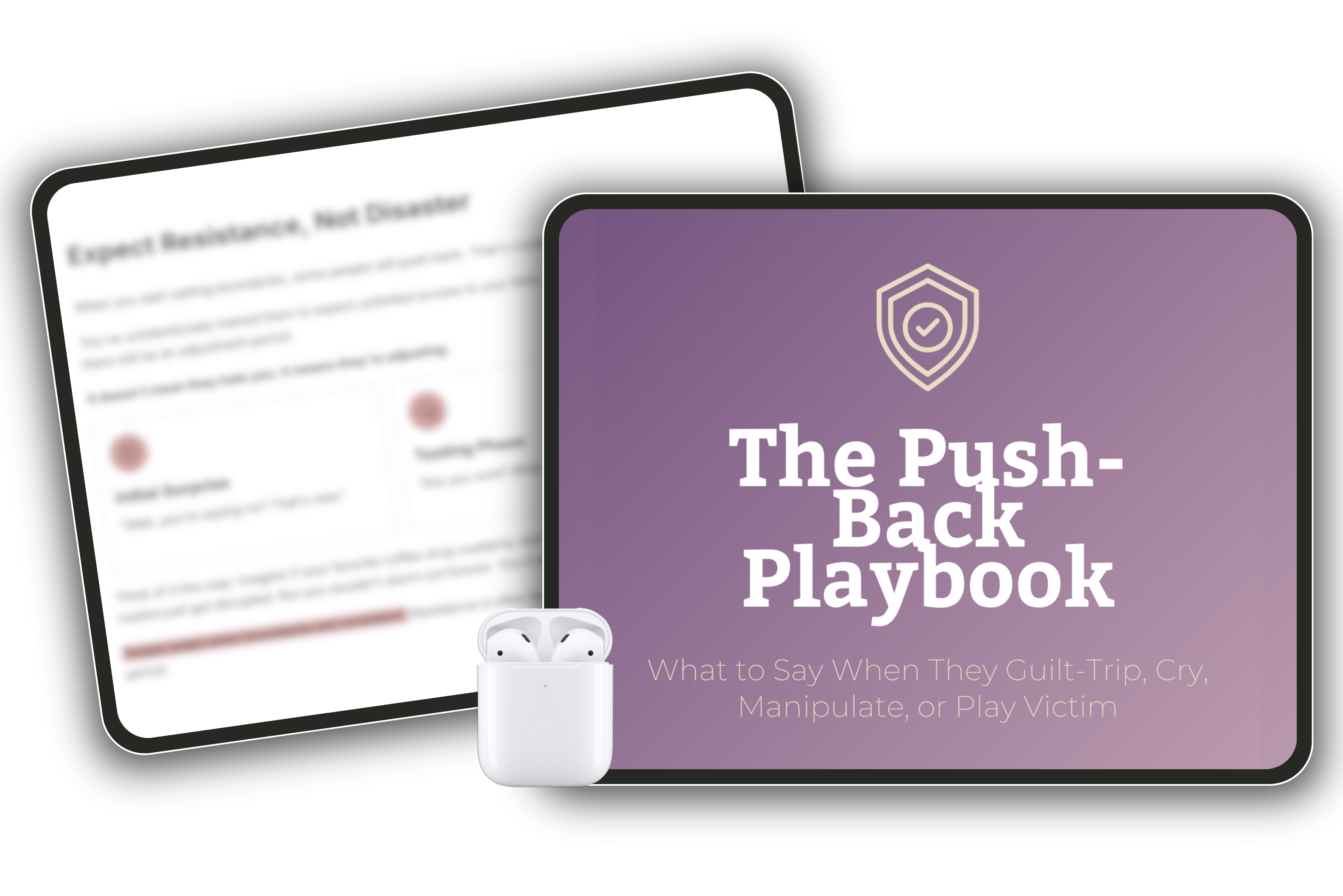 The framework includes the Push-Back Playbook that shows you exactly what to do when people guilt-trip, cry, or play victim. You'll learn how to hold your boundary without caving, without over-explaining, and without starting World War III. Most of the disasters you're imagining are fiction your brain wrote to keep you small.